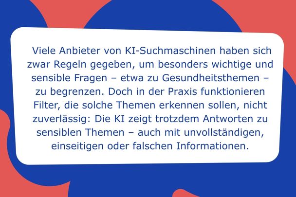 KI-Systeme liefern Antworten zu fast allen Fragen – auch zu sensiblen Themen wie Gesundheit. Dabei ist nicht klar, wie die KI-Suchmaschinen zu den Antworten gekommen ist und noch wichtiger: ob die Antworten richtig sind.
